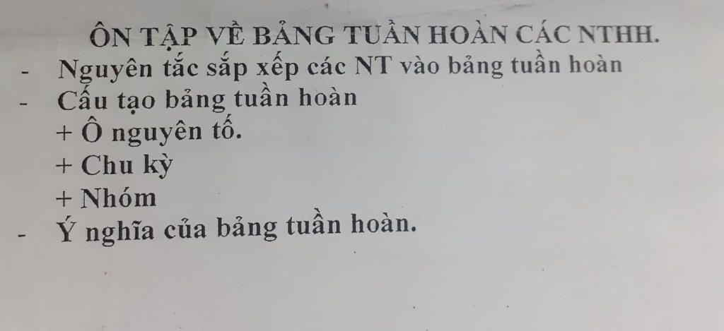 +các nguyên tố sắp xếp theo chiều tăng dần của điện tích hạt nhân nguyên tử