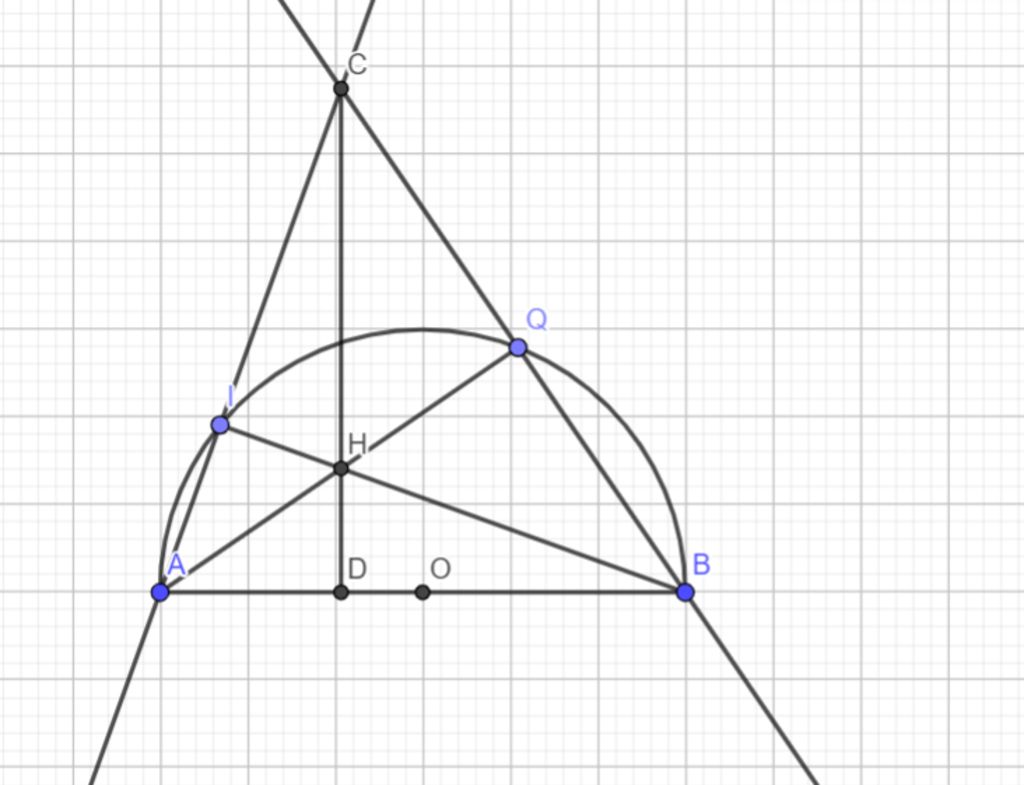 c.Ta có $QA\perp BC, BI\perp AC, AQ\cap BI=H$