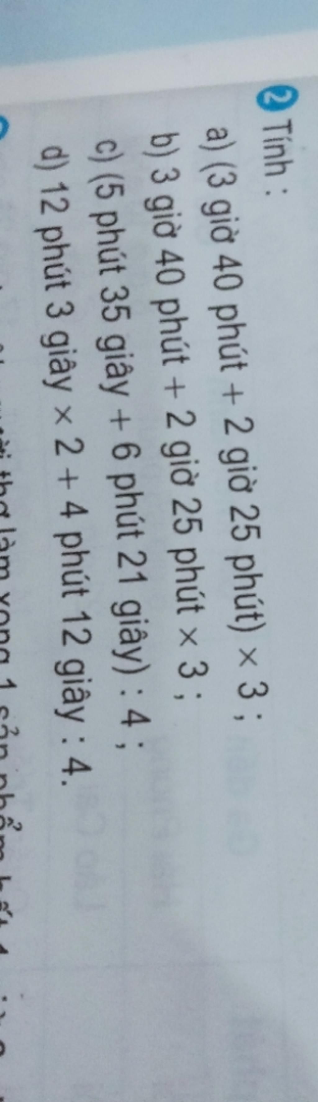 `3 giờ 40 phút + 2 giờ 25 phút x 3`