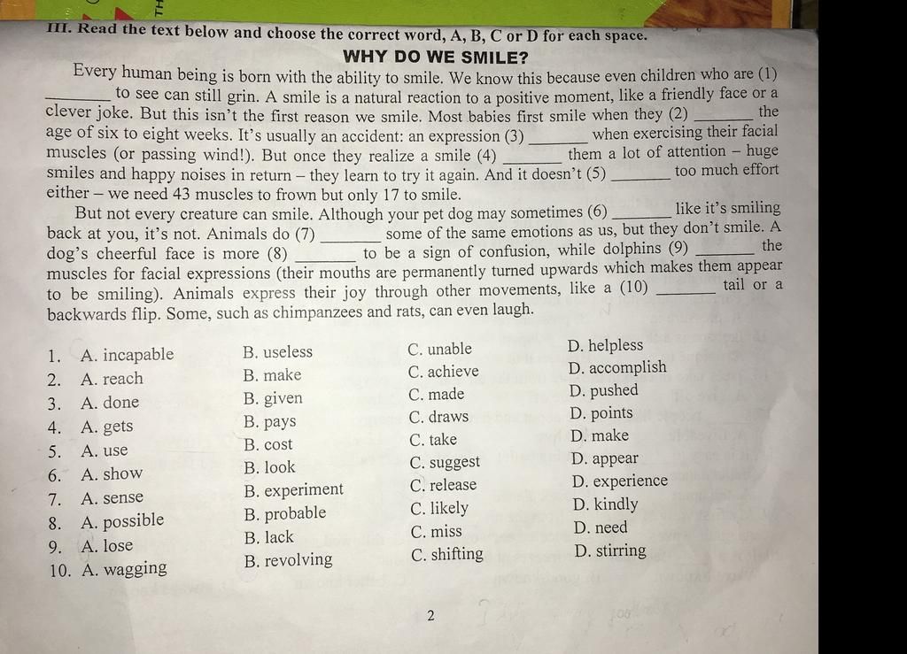 1. C be unable to V: không thể làm gì