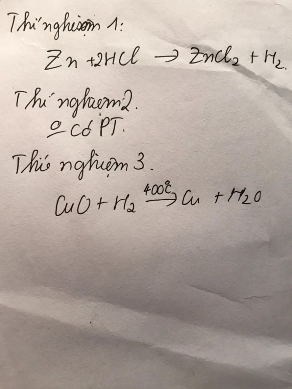 - Sau khi khẳng định dòng khí hidro không có lẫn oxi, dùng đèn cồn hơ nóng mạnh ở chỗ có CuO.