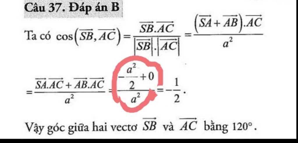 $\Delta SAC$ đều (ba cạnh bằng $a$) nên $\widehat{SAC}=60^o$ $\to \vec{SA}.\vec{AC}=SA.AC.\cos120^o=a^2\cos120^o= \dfrac{-1}{2}a^2$