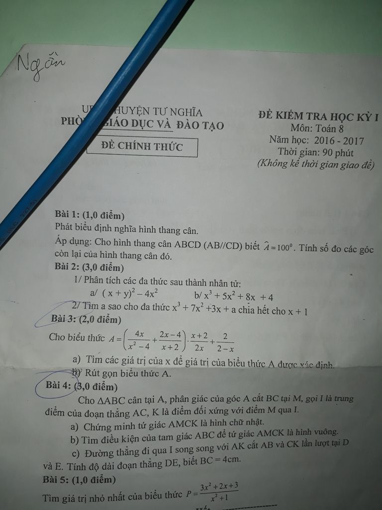 Bài 1) Hình thang cân là hình thang có 2 góc kề 1 đáy bằng nhau.
