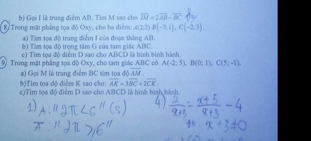Vậy\,\overrightarrow {AM} = \left( {\frac{9}{2}; - 5} \right)