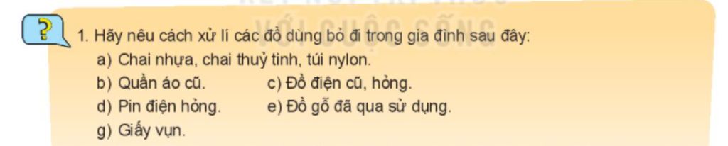 b) Quần áo cũ: nếu dùng còn tốt có thể đem cho hoặc tăng, nếu không thì có thể sử dụng làm giẻ lau.