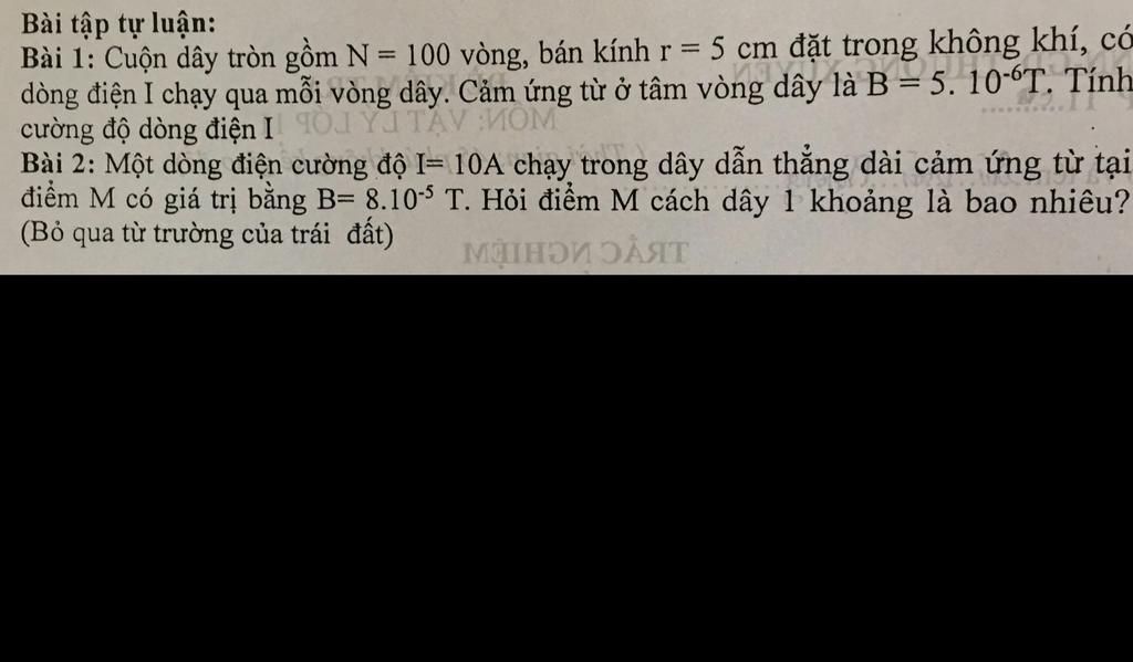 $⇔5.10^{-6}=2\pi.10^{-7}.100\dfrac{I}{0,05}⇒I≈3,98.10^{-3}(A)$
