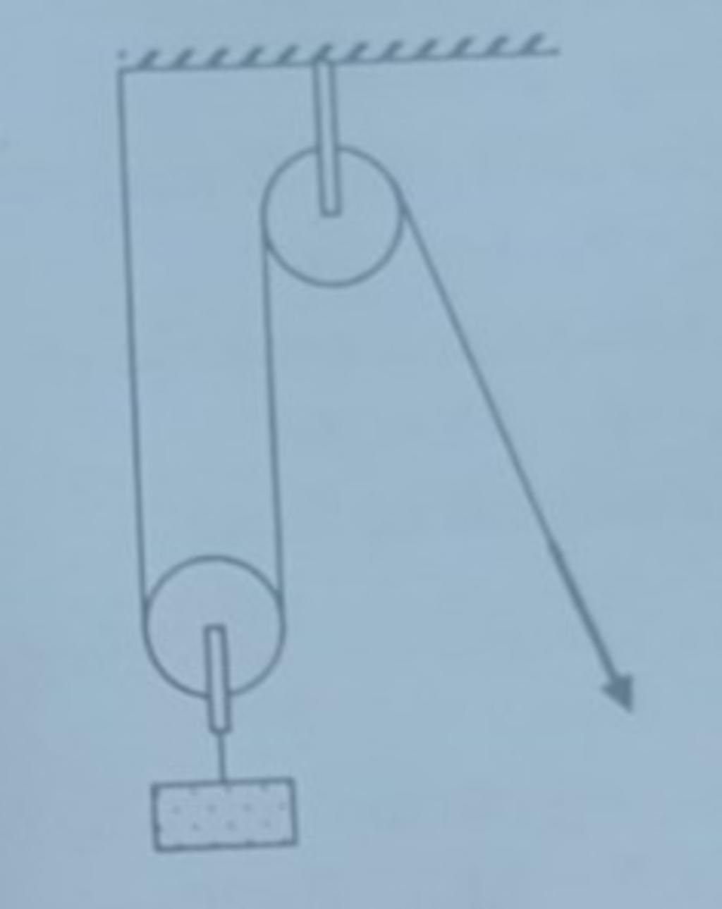 Vì hệ ròng rọc này là pa-lăng và có 1 ròng rọng động nên sẽ được lợi 2 lần về lực.