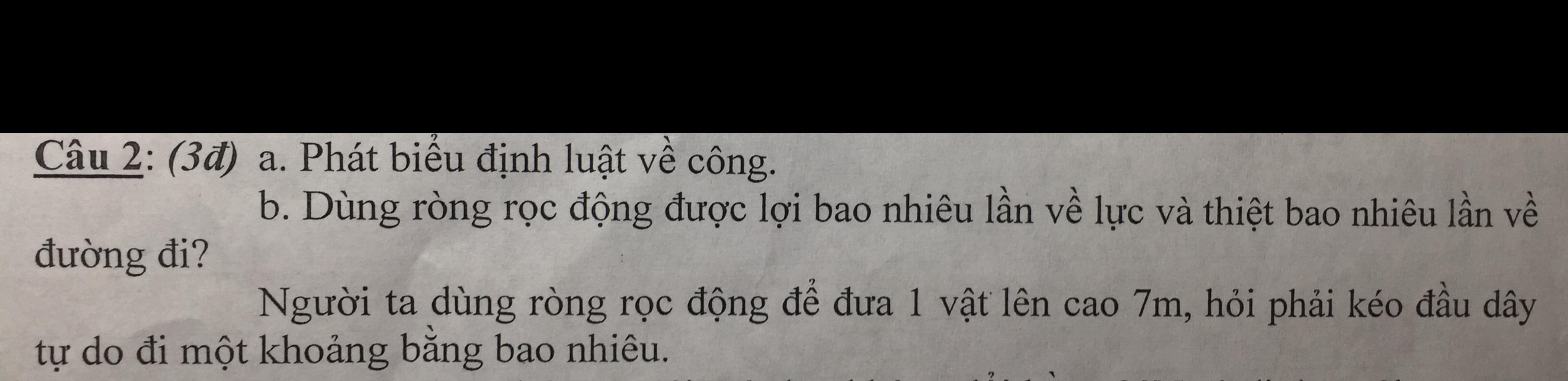 b, Dùng ròng rọc động sẽ cho ta lợi 2 lần về lực và thiệt 2 lần về đường đi