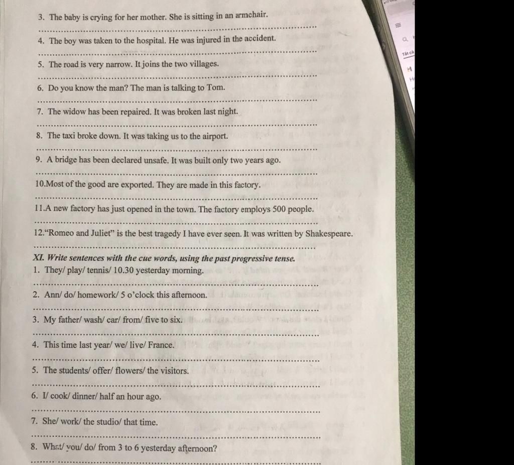 2.Ann was doing her/his homework at 5 o'clock this afternoon