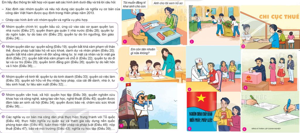 - Ghép các hình ảnh với nhóm quyền và nghĩa vụ là:
