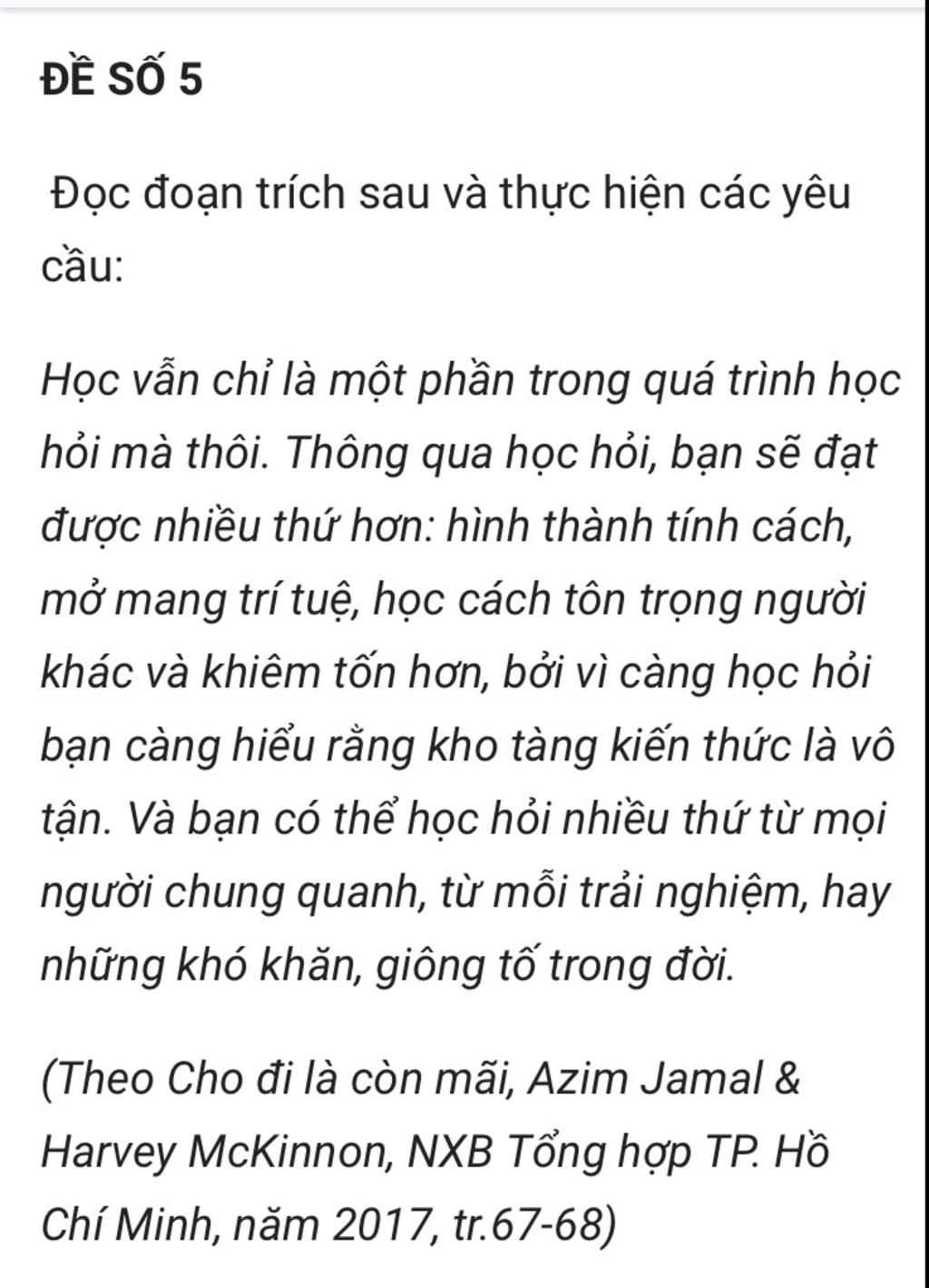 * Em đồng ý với ý kiến " học vẫn chỉ là một phần trong quá trình học hỏi mà thôi " của tác giả: