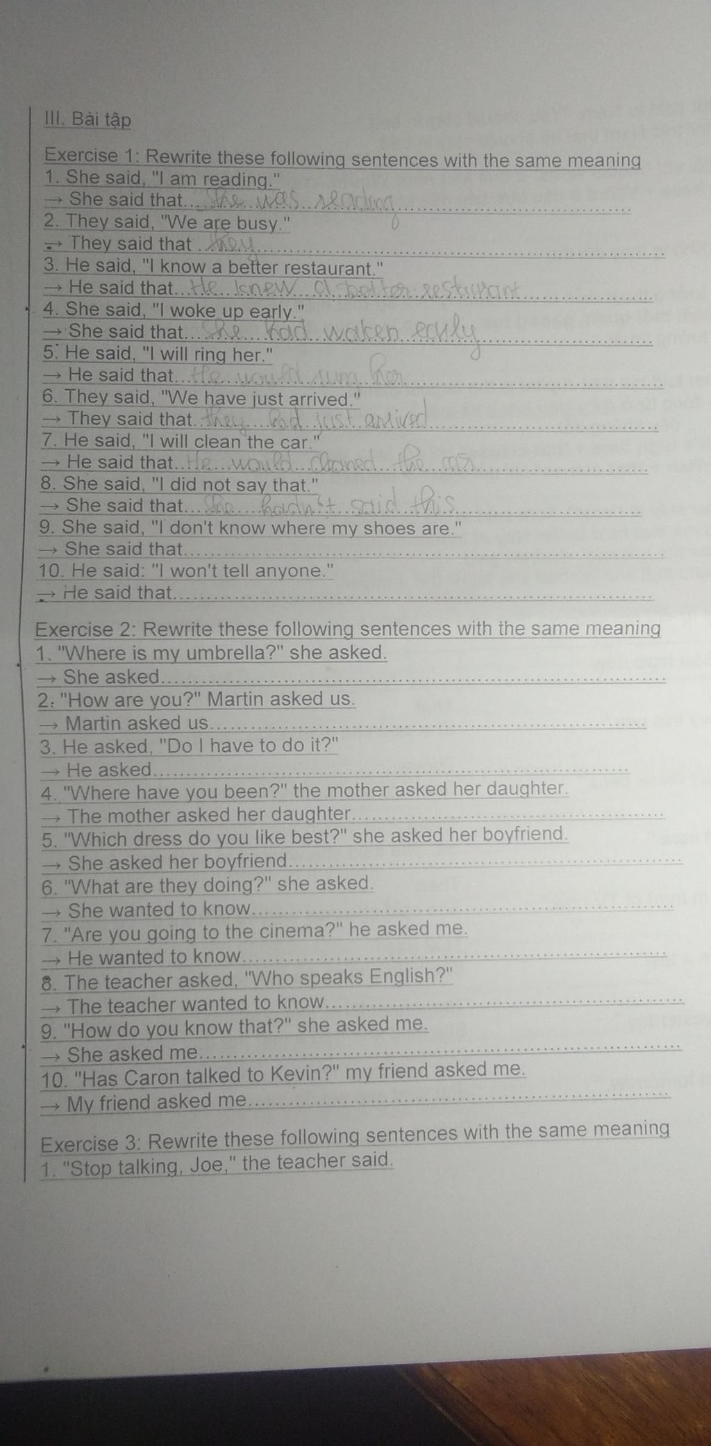ex1. 1. she said that she was reading