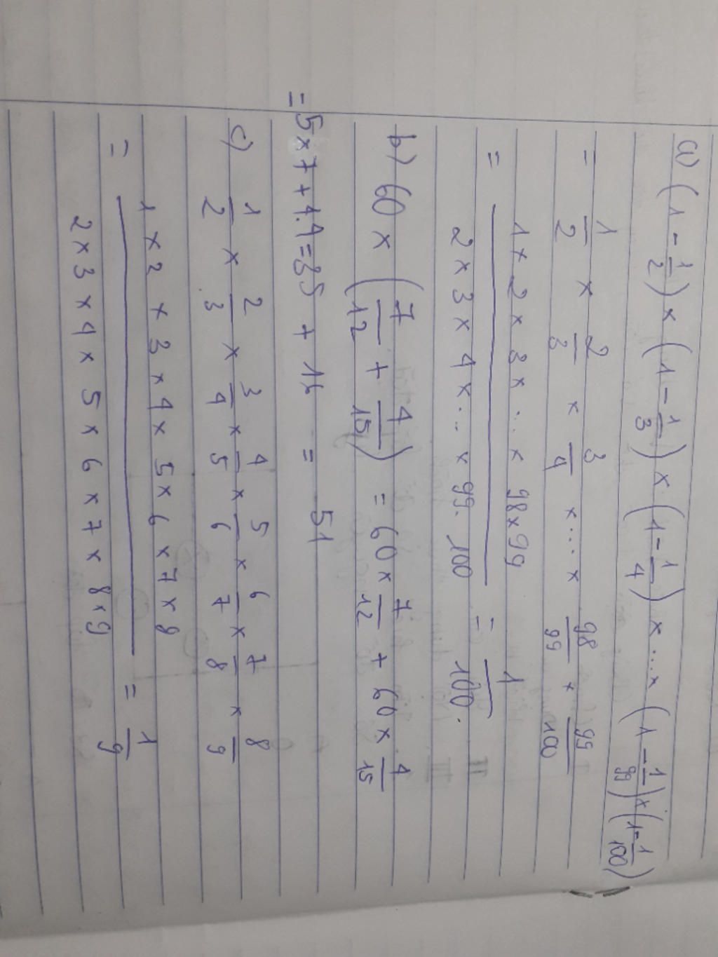 ai giúp bài này ik b= (1- ½). (1- 1/3)* (1-1/4)* (1-1/5) * … * (1-1/99)* (1-1/100)