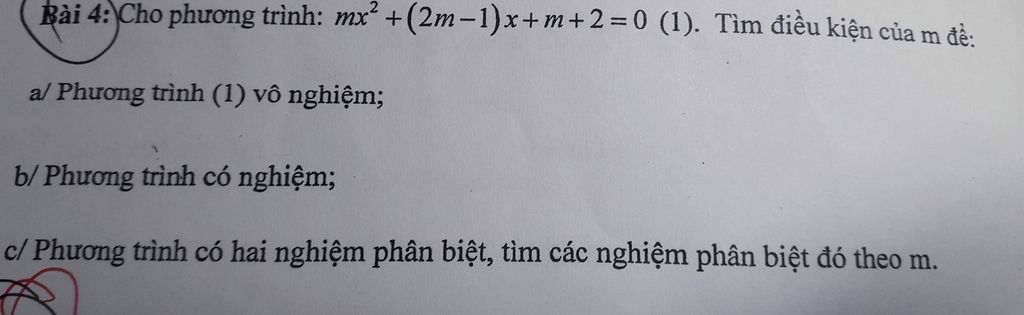 3/ để pt có 2 nghiệm phân biệt thì Δ>0