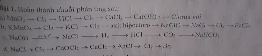 b. 2kmno4 + 16hcl ---> 2kcl + 2mncl2 + 5cl2 + 8h2o