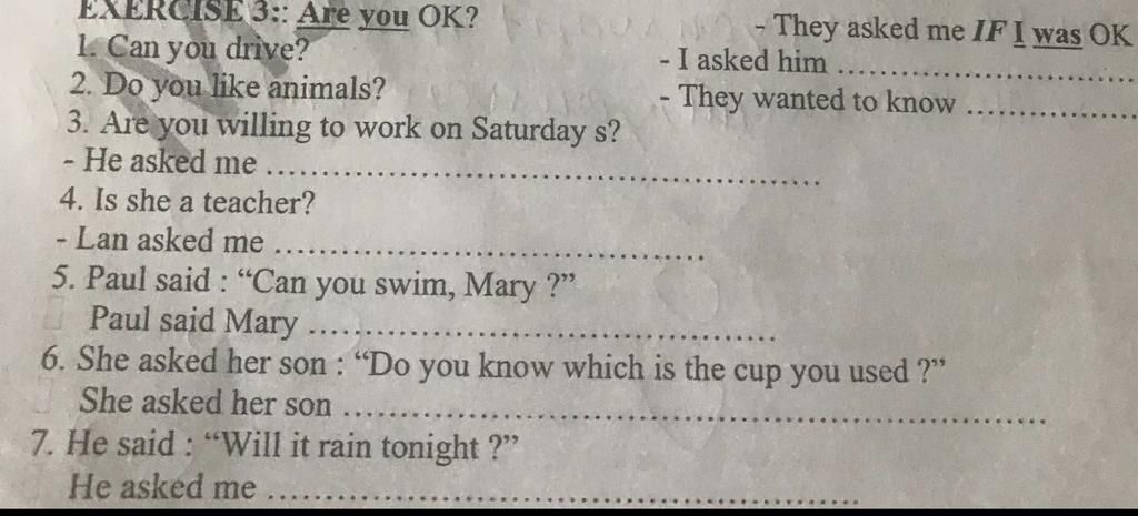 $\text{4. Lan asked me }$$\color{orange}{\text{if she was a teacher.}}$
