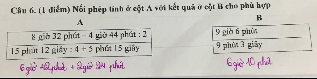 8 giờ 32 phút - 4 giờ 44 phút : 2 →→ 6 giờ 10 phút