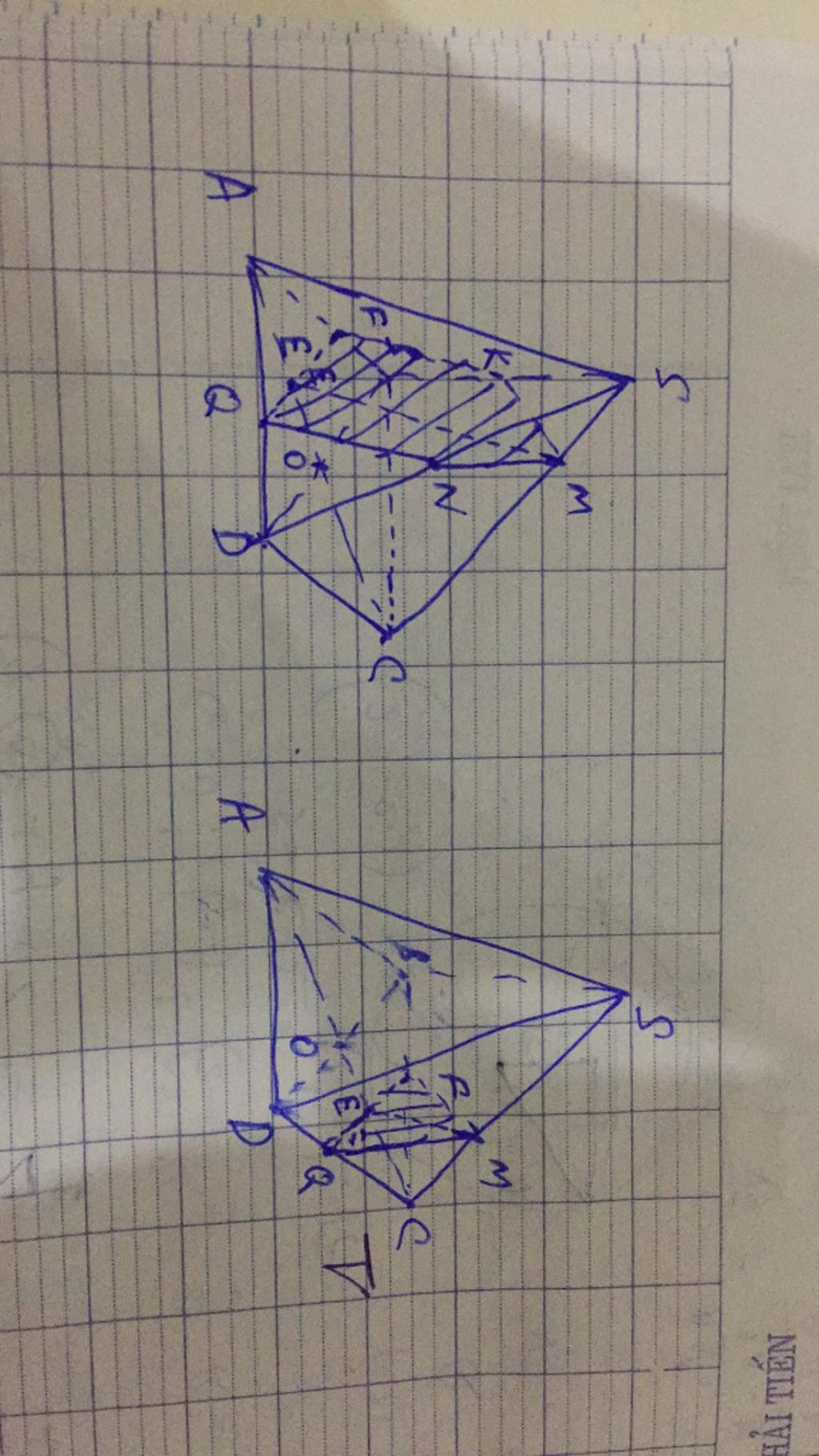 còn nếu E thuộc OA thì ta sẽ vẽ được từ E // cắt 2 cạnh AB, AD tại F,Q, kẻ FK//SA (K thuộc SB)