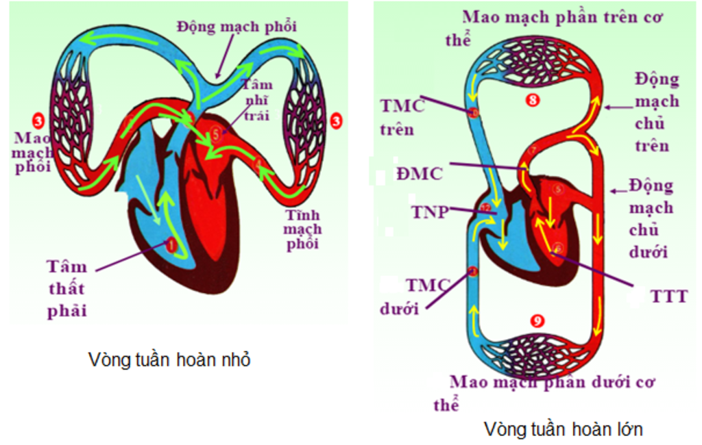 cái nào là vòng tuần hoàn lớn và cái nào là vòng tuần hoàn nhỏ ạ