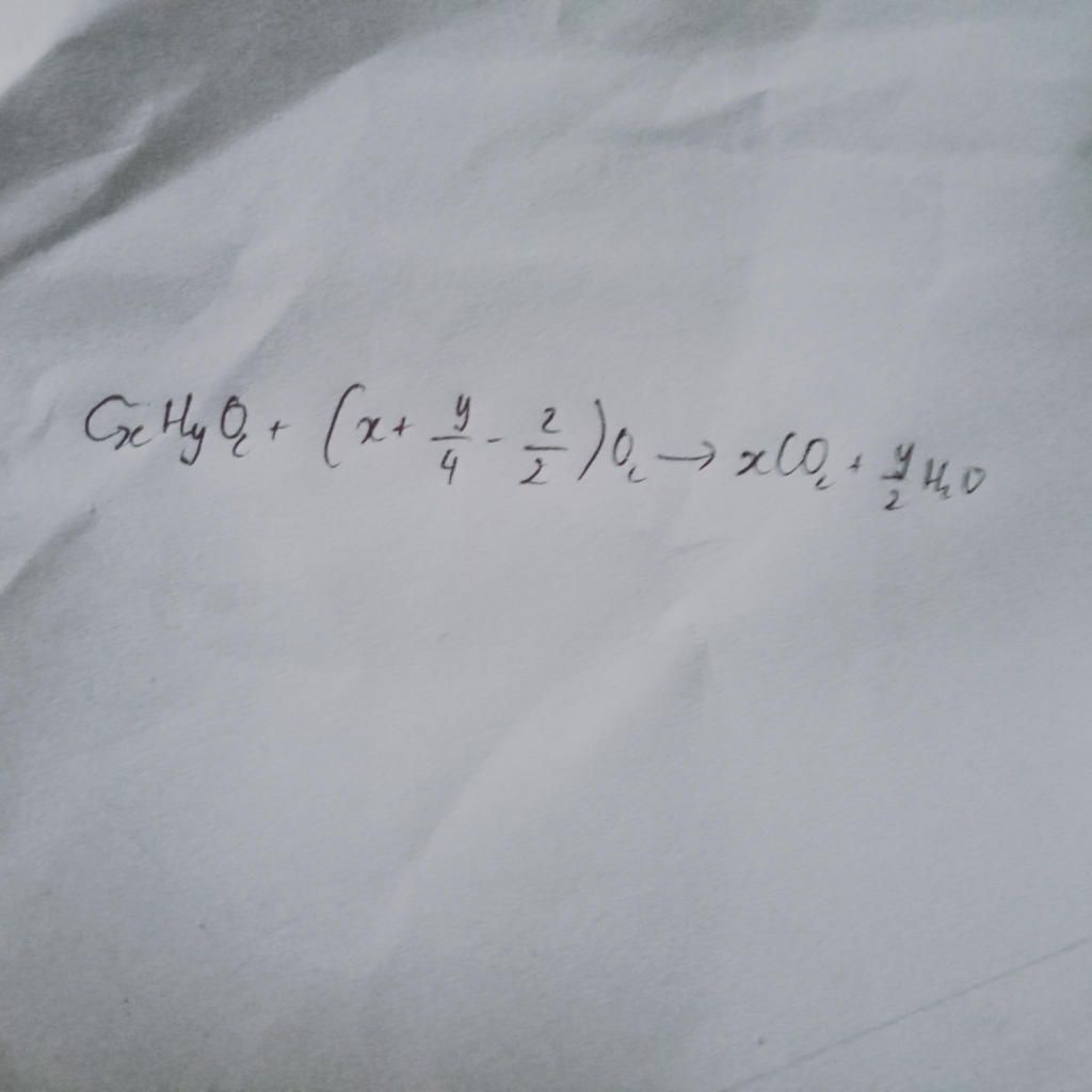 CxHyOz+(x+y/4-z/2)O2---->xCO2 +y/2 H2O