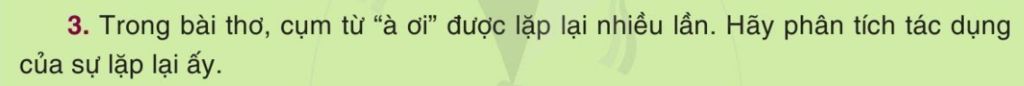 Tác dụng của sự lặp lại cụm từ "à ơi" là nhằm Nhấn mạnh, khắc ghi lời ru của mẹ trong tâm trí mỗi người. "À ơi" như tiếng vang ngân nga đọng lại và lắng sâu trong lòng người. Nó còn là cụm từ mang tính biểu trưng về với thế giới ấu thơ ấm êm tình mẹ, gợi nhắc chúng ta về nhọc nhằn của mẹ.