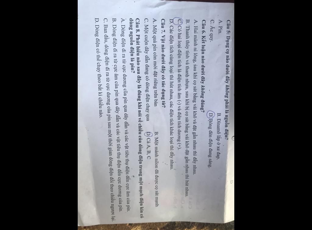 Câu 5: Dụng cụ nào dưới đây không phải là nguồn điện?