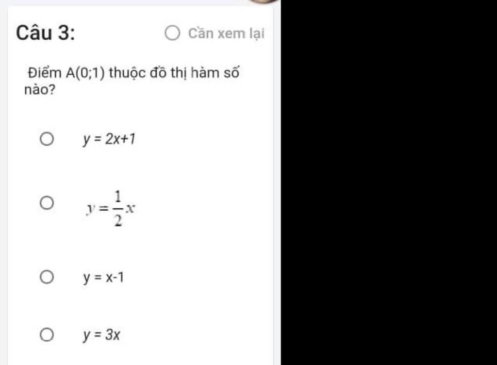 B/ $x=0, y=1→\dfrac{1}{2}.0=1$ (vô lý)