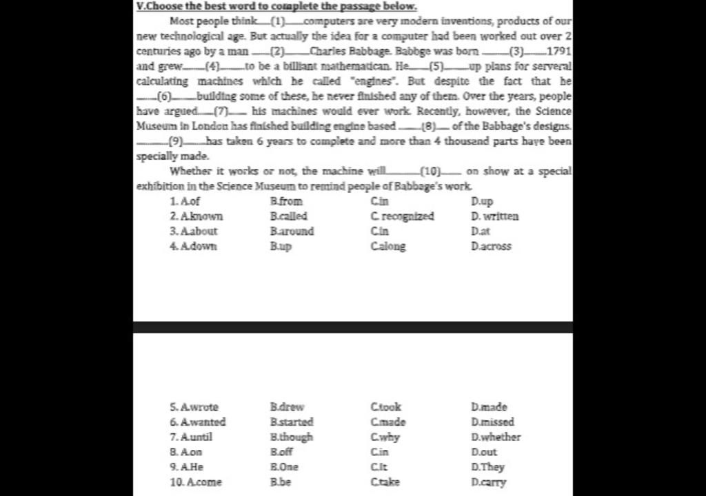 V.Choose the best word to complete the passage below.