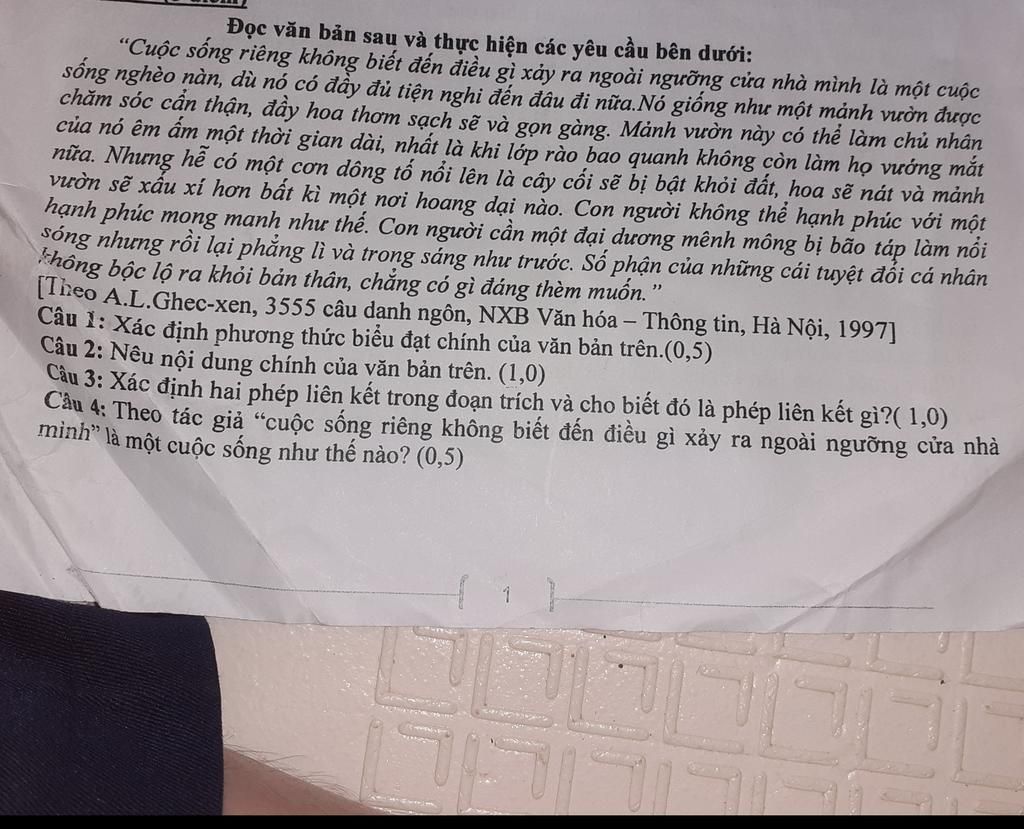 Theo tác giả , " cuộc sống riêng không biết đến điều gì xảy ra ngoài ngưỡng cửa nhà mình " là một cuộc sống nghèo nàn , dù nó có đầy đủ , tiện nghi đến đâu nữa .