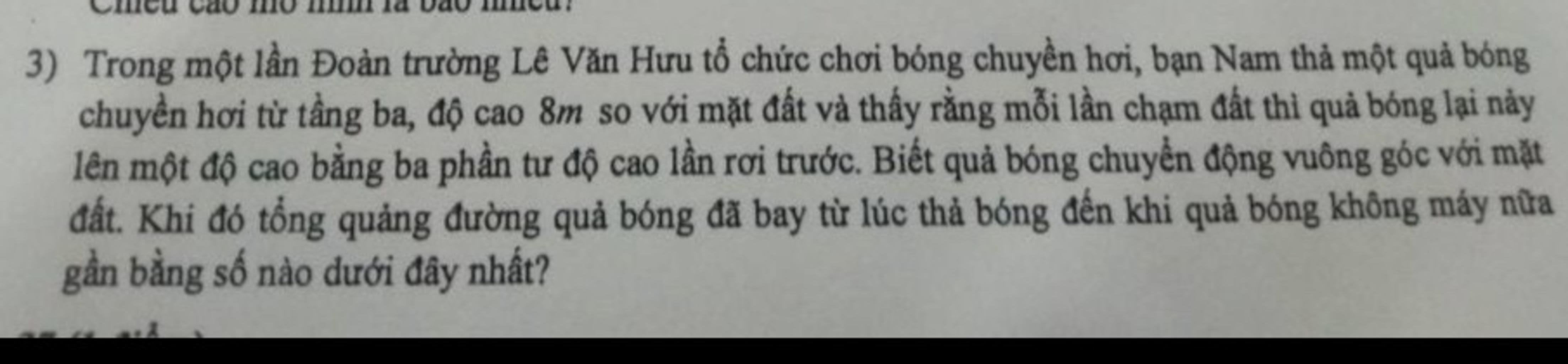 Bóng tiếp tục nảy lên $8.\dfrac{3}{4}.\dfrac{3}{4}(m)$ rồi rơi xuống...