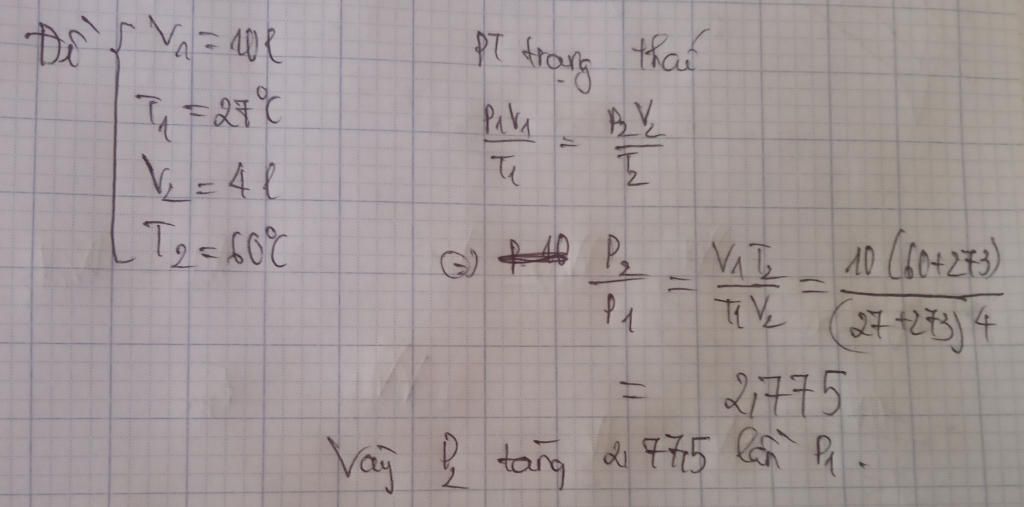 \Rightarrow \dfrac{{{p_1}.10}}{{300}} = \dfrac{{{p_2}.4}}{{360}}\\