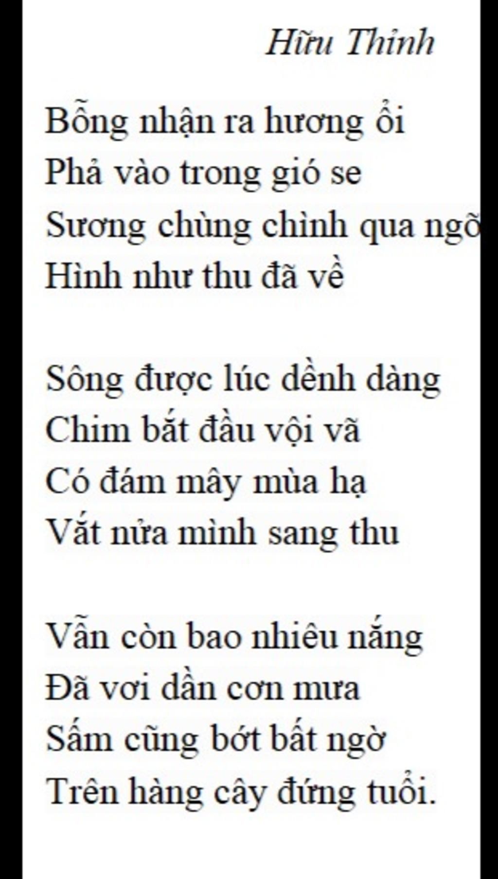 + Gợi cảm xúc bâng khuâng, xao xuyến đến lạ của Hữu Thỉnh trước bước chuyển mùa còn có phần chầm chậm tiếc nuối.