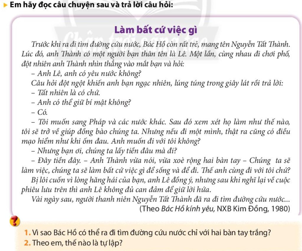 – Vì thế Bác Hồ có thể ra đi tìm đường cứu nước mặc dù chỉ với hai bàn tay trắng.