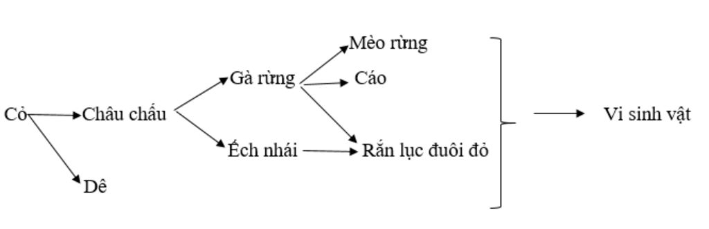 Cỏ → Châu chấu → Gà rừng → Mèo rừng → Vi sinh vật