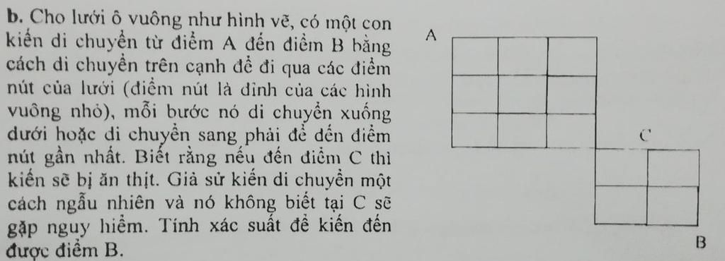 b. Cho lưới ô vuông như hình vẽ, có một con