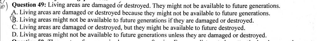 m) Question 49: Living areas are damaged or destroyed. They might not be available to future generations.