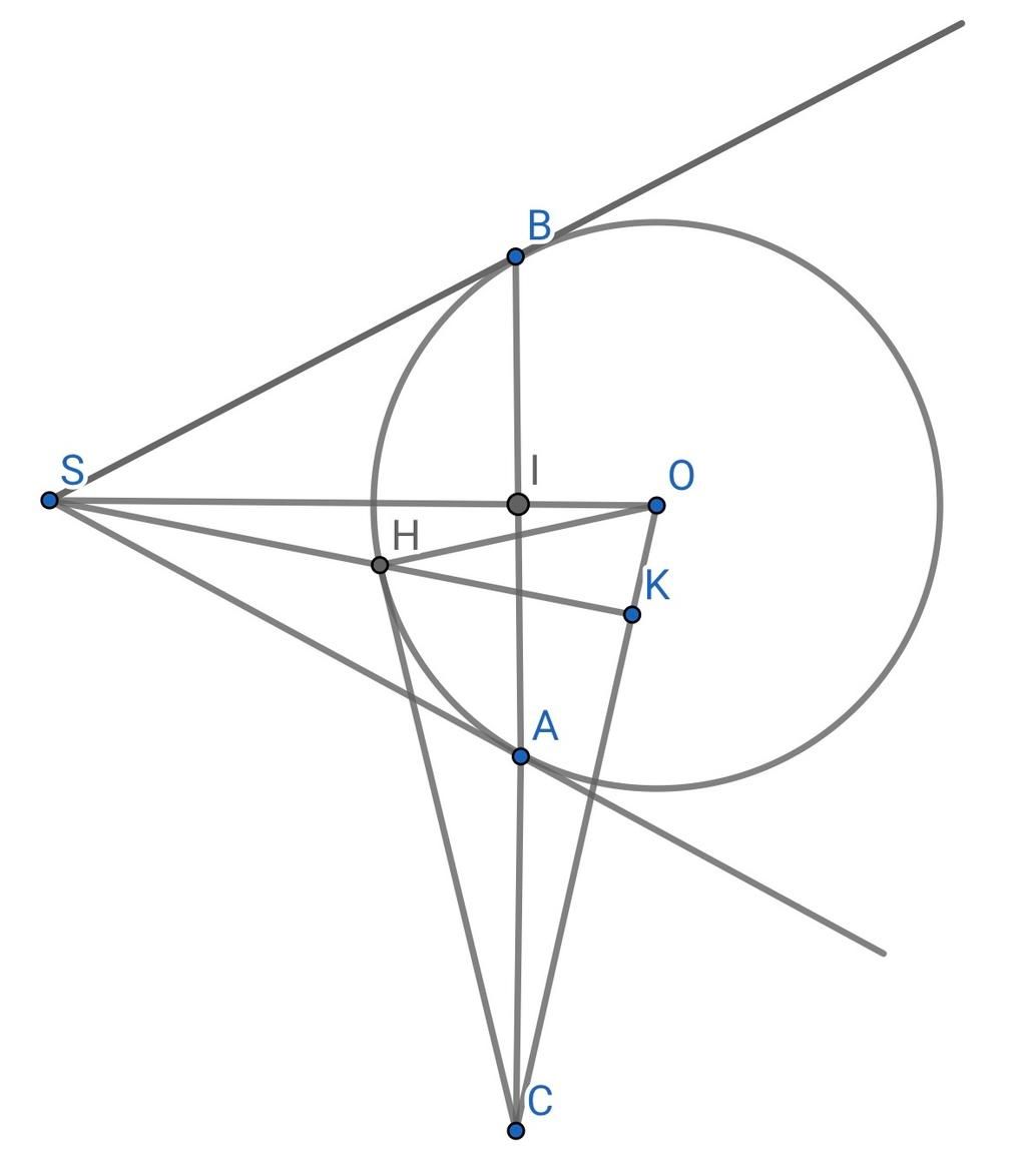 $\text{⇒ SB=SA, SO là phân giác $\text{BSA}$ (tính chất hai hai tiếp tuyến cắt nhau)}$