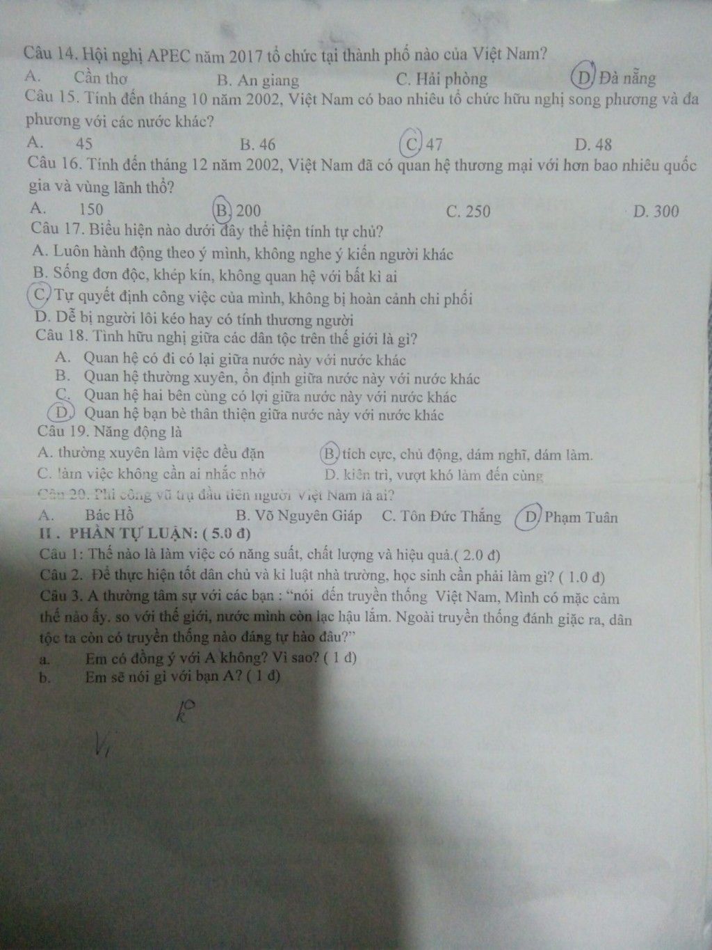 a. Ngoài truyền thống đánh giặc, nhân dân ta còn có truyền thống: Đoàn kết, yêu nước, cần cù siêng năng, tôn sư trọng đạo,...