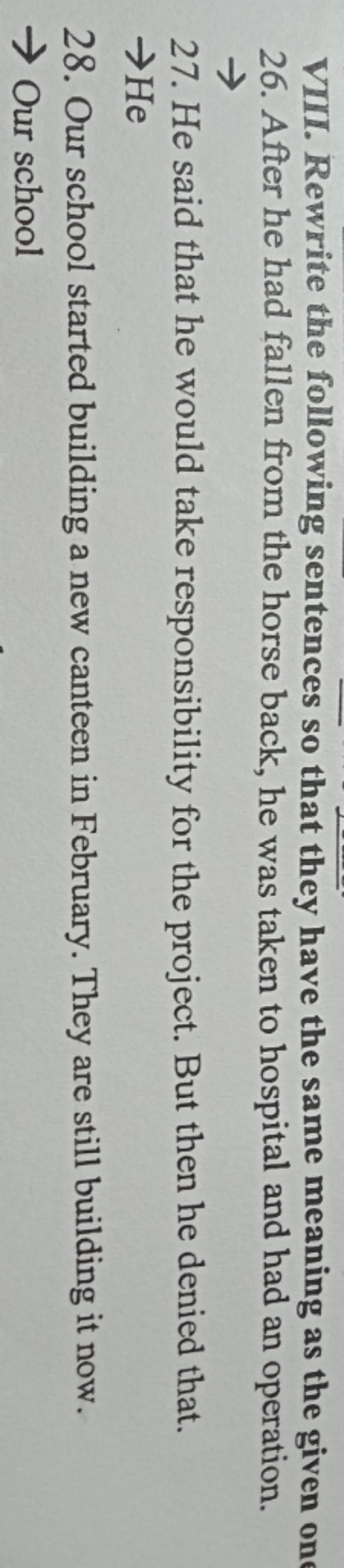 VIII. Rewrite the following sentences so that they have the same meaning as the second one