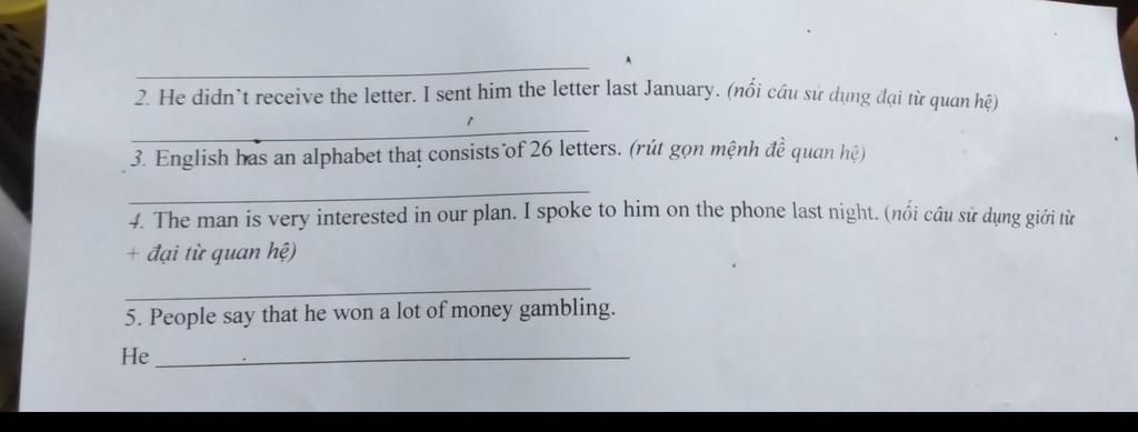 2 He didn't receive the letter which I sent him last January.