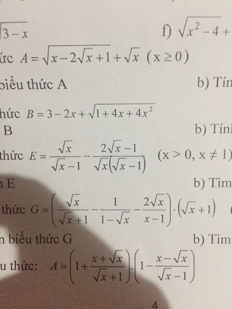 A = \sqrt {x - 2\sqrt x + 1} + \sqrt x \left( {x \ge 0} \right)\\