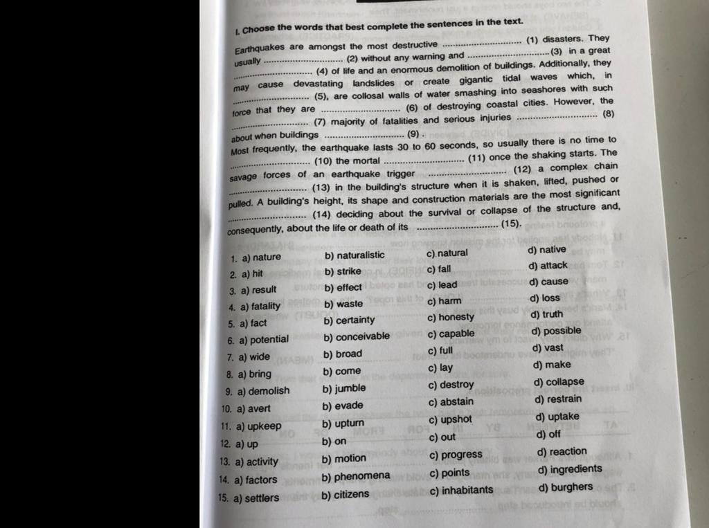 I. Choose the words that best completes the sentences