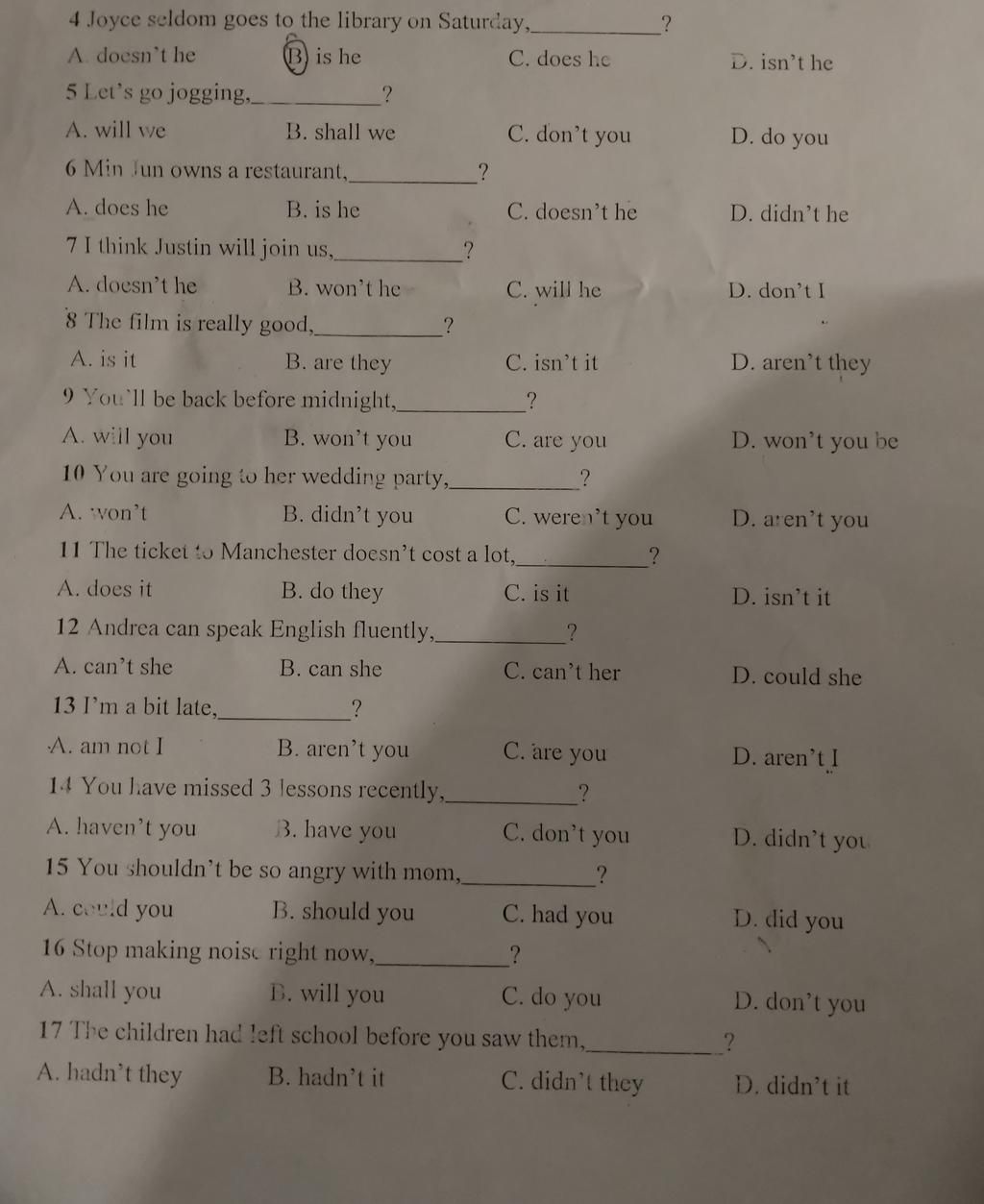 4 Joyce seldom goes to the library on Saturday,
