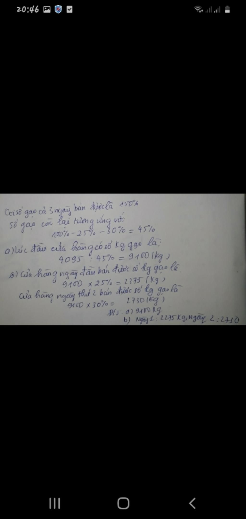 4095 : ( 100 - 25 - 30 ) x 100 = 9100 ( kg )