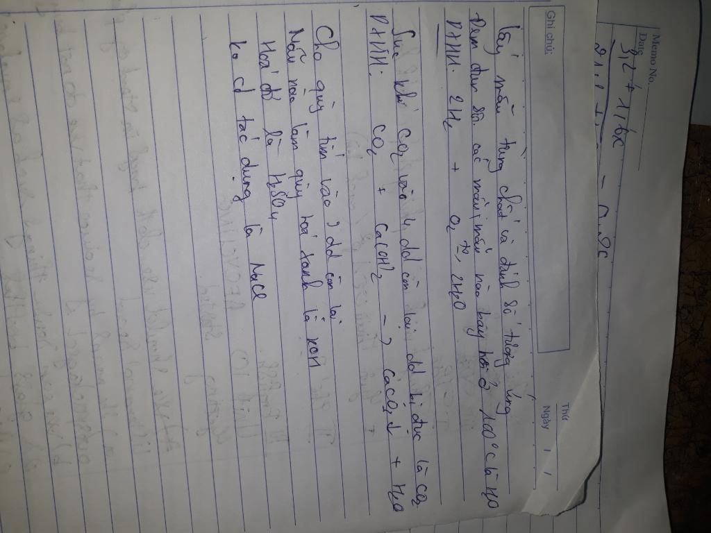 Sục khí $CO_2$ qua các mẫu thử ở nhóm 1. Mẫu xuất hiện kết tủa màu trắng là $Ca(OH)_2$; không có hiện tượng gì là $KOH$.