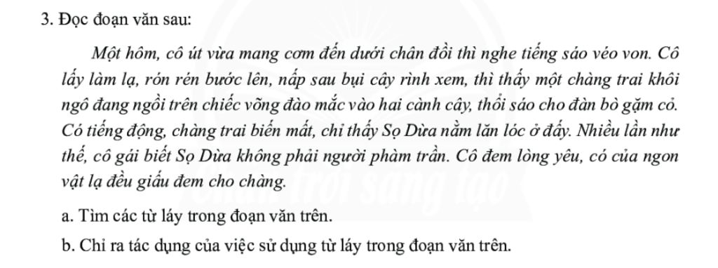 b. Tác dụng: các từ láy có tác dụng miêu tả âm thanh, làm cho đoạn văn thêm sống động, hấp dẫn người đọc, gợi hình gợi cảm cho sự diễn đạt.