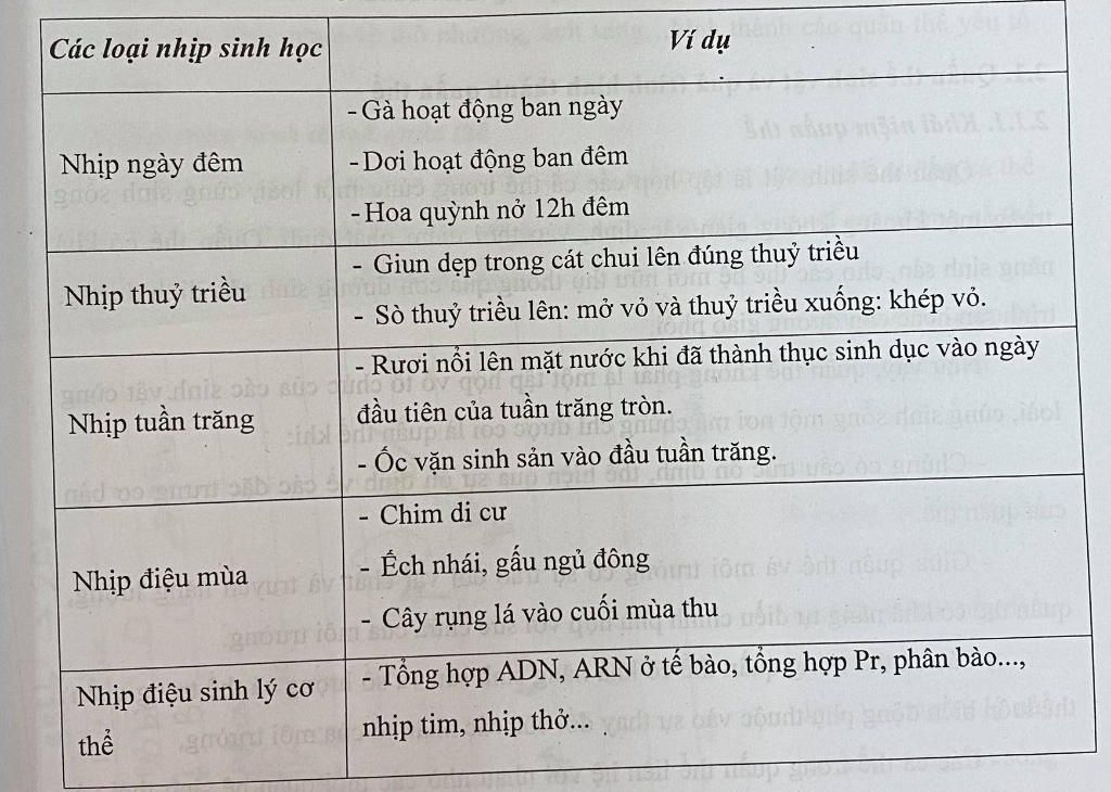 - Nhịp sinh học là những hoạt động theo chu kì của sinh vật và là sự thích nghi của sinh vật với những thay đổi theo chu kì của môi trường.