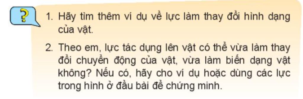Lực tác dụng lên vật có thể vừa làm thay đổi chuyển động vật, vừa làm biến dạng vật.