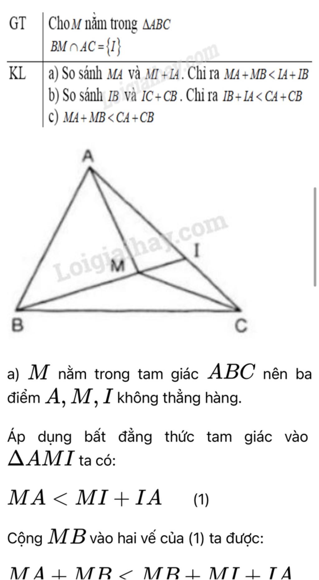 hay MA + MB < IB + IA (vì MB + MI = IB).