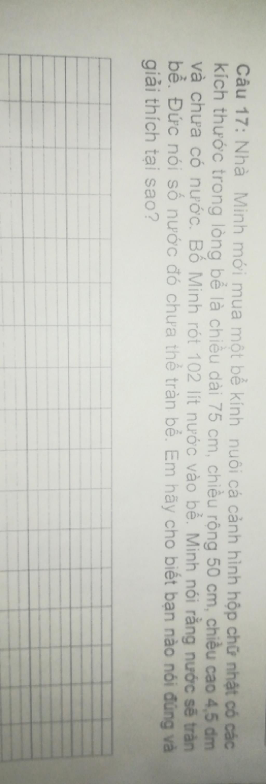 thể tích bể là : đổi